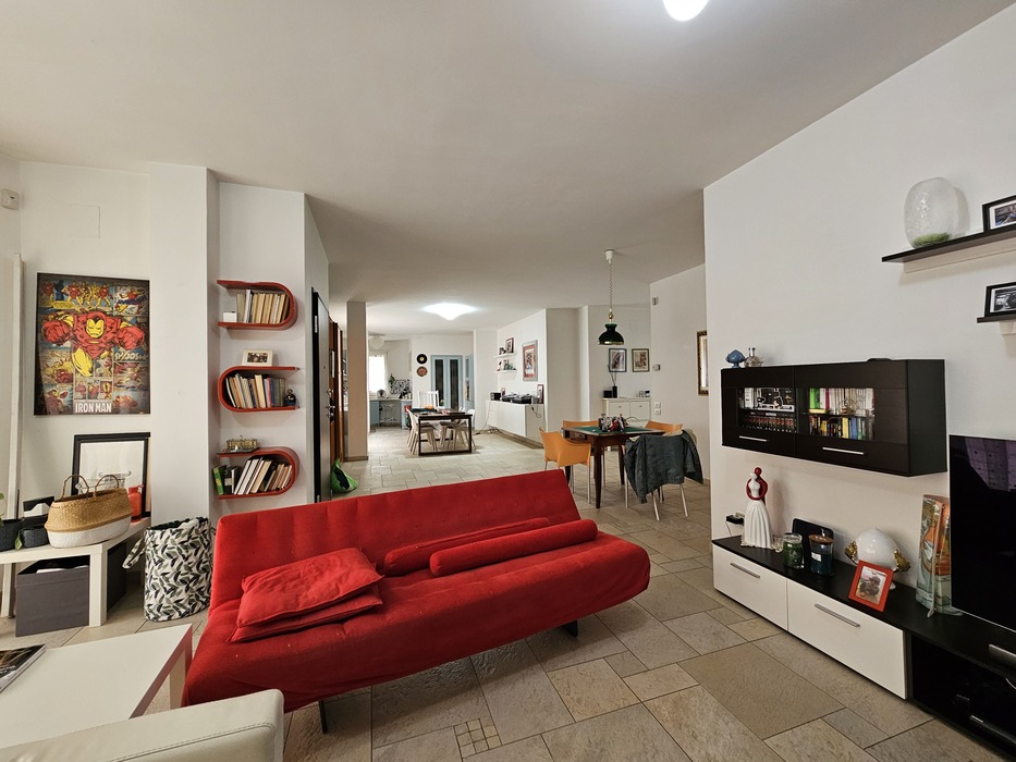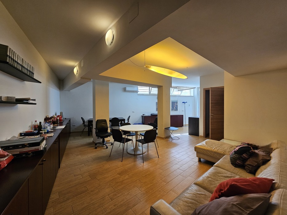 *piano primo grande open space con camino, cucina abitabile, bagno e camera/studio; terrazzi a livello di circa mq. 130;